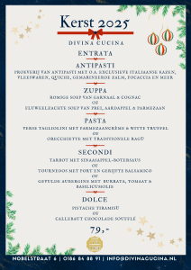 Op 26 en 27 december serveren wij een feestelijk kerstmenu vol warmte, smaak en Italiaanse traditie.